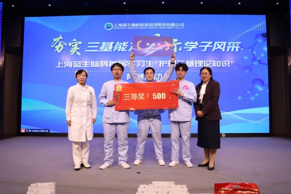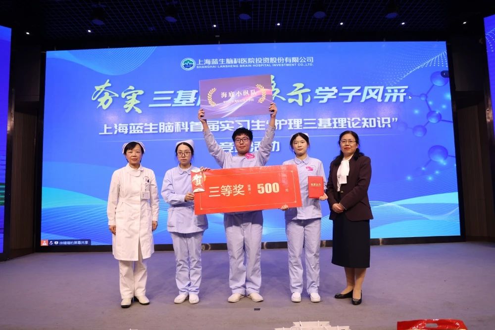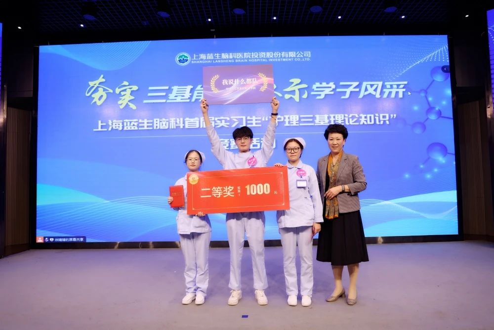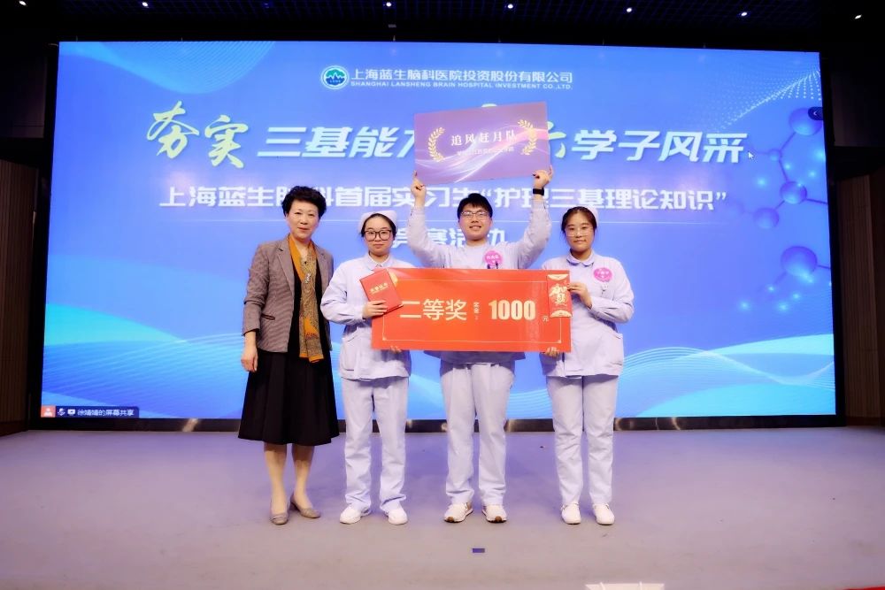 通過激烈競答,上海藍十字腦科醫(yī)院“愛拼才會贏隊”榮獲一等獎。上海天佑醫(yī)院的五支隊伍包攬二、三等獎。唐秀花總監(jiān)、王強執(zhí)行院長、劉瑋琳主任、張秀娟主任為獲獎隊伍頒獎。