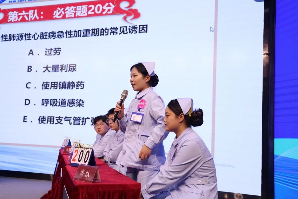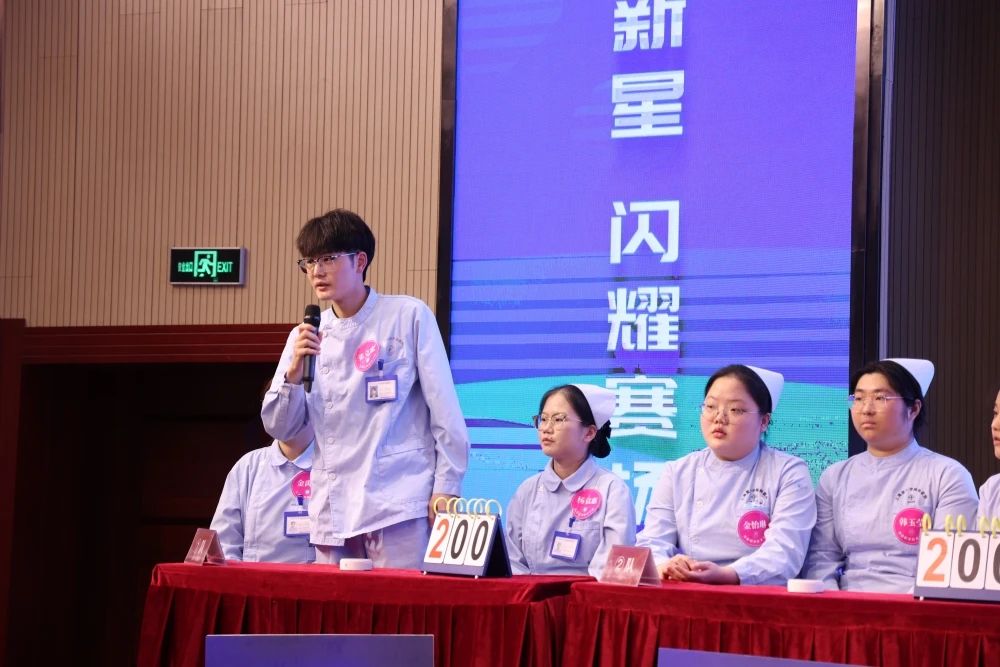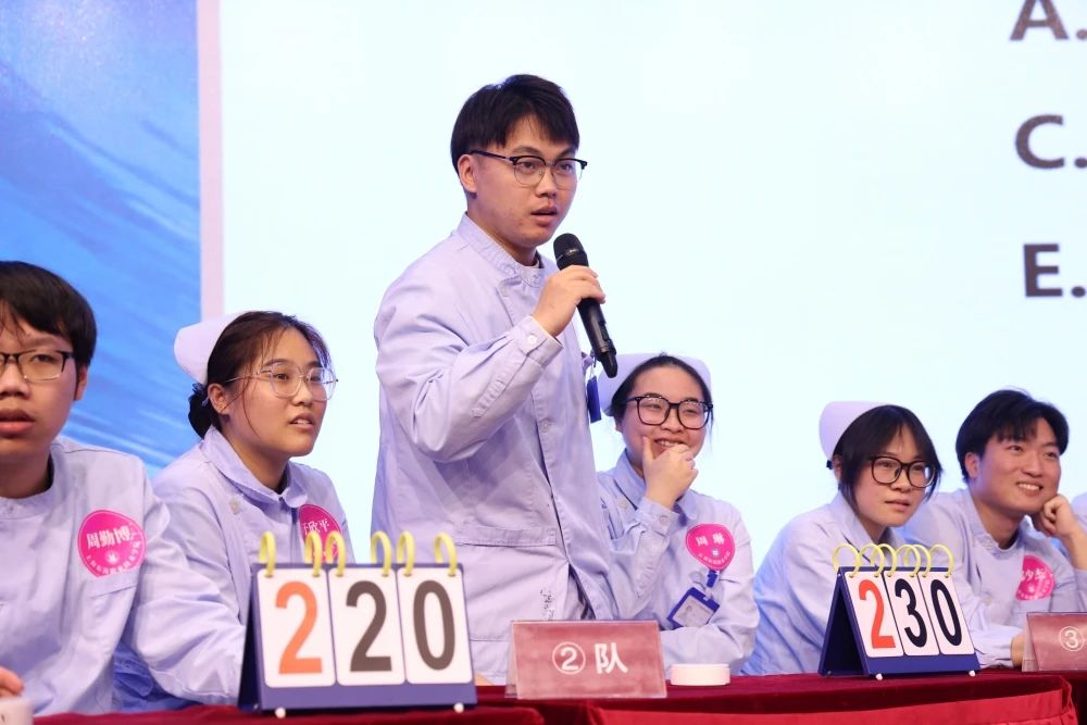 競賽現(xiàn)場,來自兩家醫(yī)院的54名實習生組成了18支代表隊,進行了長達兩個多小時的“專業(yè)知識PK”。本次知識競賽分為初賽和決賽兩個部分,設置了必答題、搶答題、風險題等多個環(huán)節(jié)。競賽題目范圍廣,以基礎護理學知識為主,包含內科、外科、婦產(chǎn)科、兒科等多個專業(yè)內容。