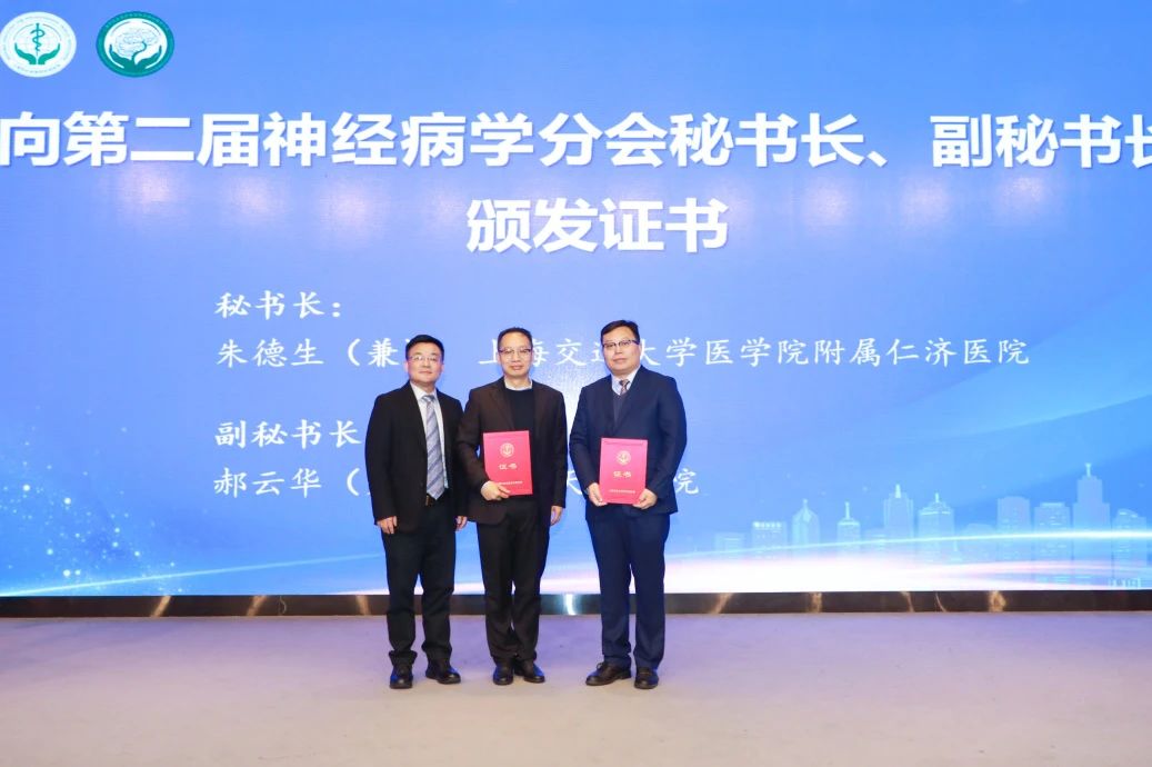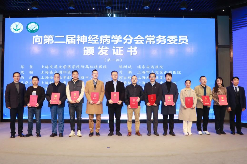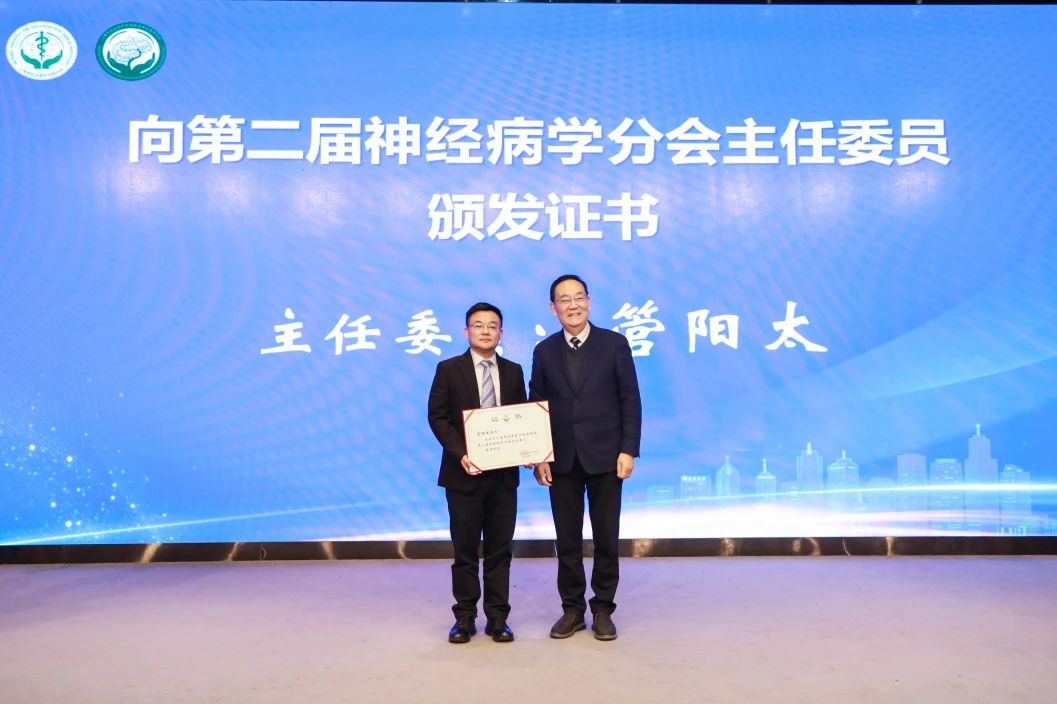 協(xié)會領(lǐng)導(dǎo)為第二屆神經(jīng)病學(xué)分會主任委員、秘書長、副秘書長、常委頒發(fā)證書。