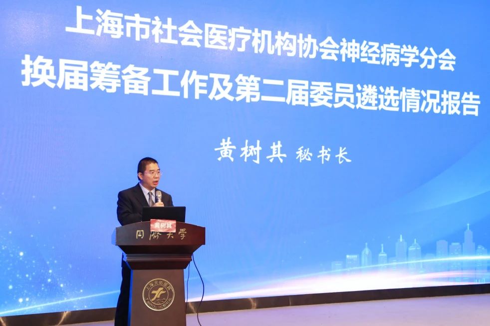 第一屆神經(jīng)病學(xué)分會副主委兼秘書長、天佑醫(yī)院神經(jīng)內(nèi)科主任黃樹其作神經(jīng)病學(xué)分會換屆籌備工作及第二屆委員推選情況報告,他從神經(jīng)病學(xué)分會換屆的背景、換屆籌備等方面進行了詳細介紹。