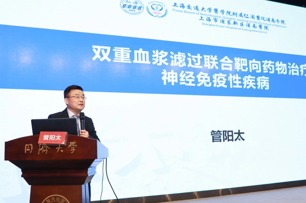 神經(jīng)病學(xué)分會主任委員、上海交通大學(xué)醫(yī)學(xué)院附屬仁濟醫(yī)院神經(jīng)內(nèi)科主任管陽太作《雙重血漿濾過聯(lián)合靶向藥物治療神經(jīng)免疫性疾病》專題講座,介紹了血漿置換的基本原理、臨床應(yīng)用及相關(guān)經(jīng)驗等。