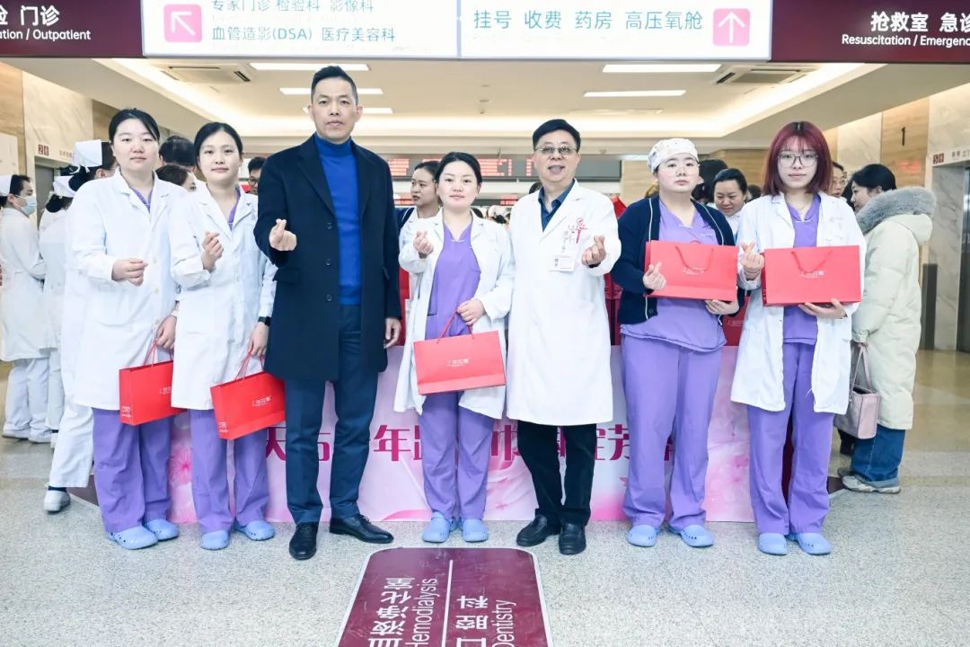 7日,上海天佑醫(yī)院領導一早便來到門診大廳,為女員工送上精心準備的節(jié)日禮物和祝福。醫(yī)院也收到了多位在院工作超過十年的女員工送來的祝福。