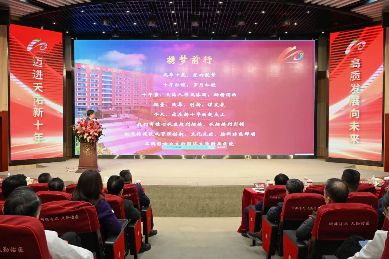 走進(jìn)新十年,面臨新形勢和新挑戰(zhàn),蔡院長強(qiáng)調(diào),天佑醫(yī)院將以高質(zhì)量發(fā)展為目標(biāo),尋求“雙創(chuàng)”突破(創(chuàng)上海市二甲綜合醫(yī)院和同濟(jì)大學(xué)附屬醫(yī)院脫籌),從追趕到超越,從超越到引領(lǐng),把天佑醫(yī)院建設(shè)成管理創(chuàng)新、文化先進(jìn)、腦科特色鮮明、品牌影響力大的同濟(jì)大學(xué)附屬醫(yī)院。
