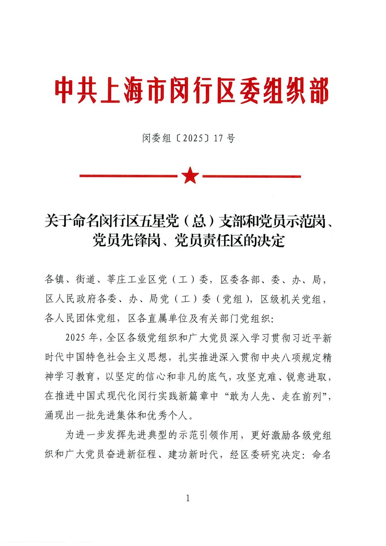 6月23日,為進(jìn)一步發(fā)揮先進(jìn)典型的示范引領(lǐng)作用,更好激勵(lì)各級(jí)黨組織和廣大黨員奮進(jìn)新征程、建功新時(shí)代,經(jīng)中共上海市閔行區(qū)委組織部研究決定:命名中共閔行區(qū)江川路街道安寧路第一居民區(qū)總支部委員會(huì)等220個(gè)黨(總)支部為“五星黨(總)支部”。中共上海藍(lán)十字腦科醫(yī)院支部委員會(huì)榜上有名。