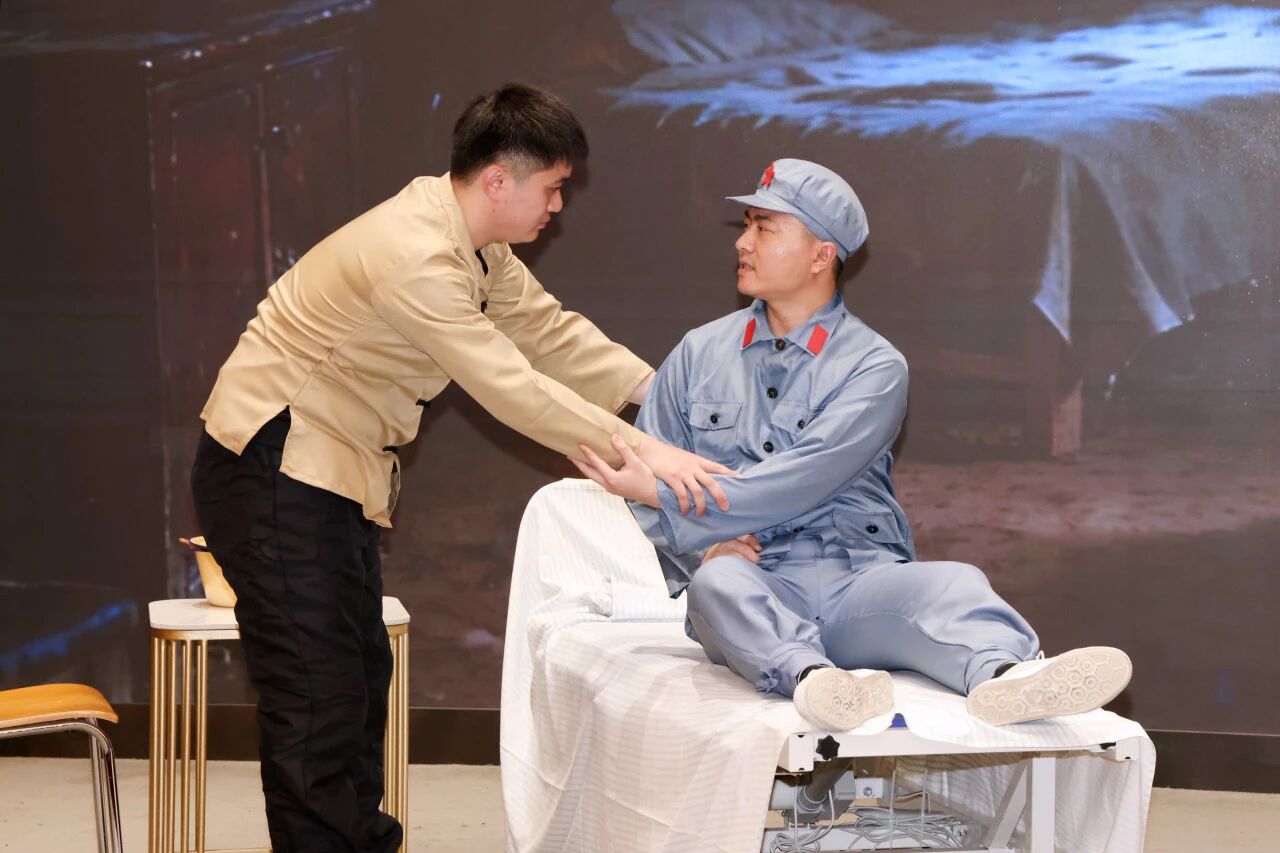 本次主題黨日活動的創(chuàng)作與演繹盡顯黨員擔當。年輕黨員袁慧婷、章芷妍包攬編劇、導演、道具、背景全流程創(chuàng)作。舞臺之上,幾位青年黨員的演繹更是真摯動人,在天佑醫(yī)院考察、培養(yǎng)、成長起來的黨員肖昊清,為演繹紅軍小戰(zhàn)士,主動查閱長征史料、潛心揣摩角色,將負傷戰(zhàn)士的堅毅與赤誠刻畫得深入人心;綜合外科主任助理郭建強飾演的張主任,眼神篤定、氣度沉穩(wěn),盡顯醫(yī)者清廉風骨……雖非專業(yè)演員,卻有最真實的感悟,真誠的情感,參演者們將抽象的廉潔準則,化為可感可觸的動人情節(jié)。