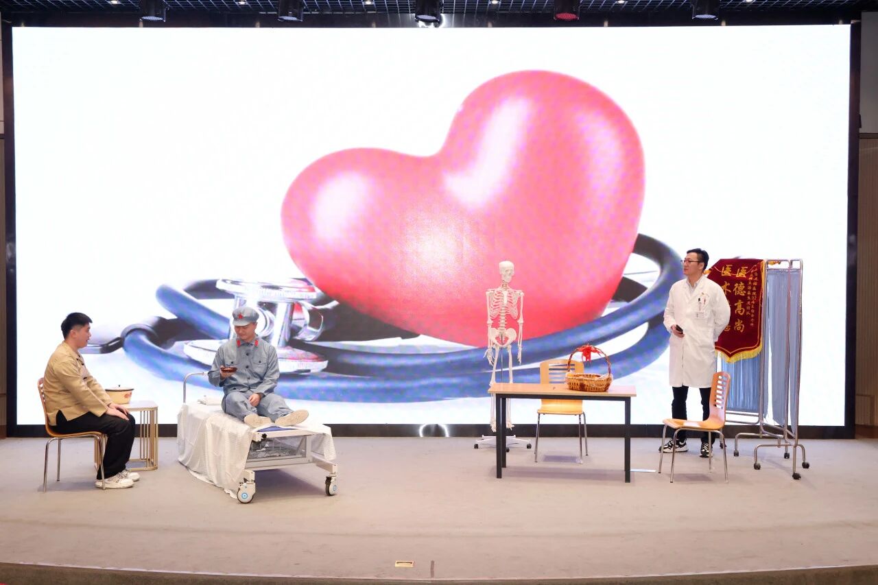 上海天佑醫(yī)院國際會議廳舞臺上,一句句鏗鏘有力的臺詞和一個個聲情并茂的演繹,詮釋了醫(yī)生的風骨。由醫(yī)院黨支部組織,青年黨員自編、自導、自演的情景劇《傳承》于2025年11月21日在此上演。作為黨支部主題日活動,《傳承》以“劇”述廉,以“情”感人,展開了一場跨越時空的醫(yī)德對話。