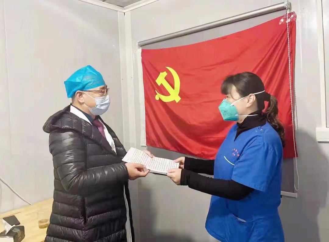 “要說三姐妹向黨組織遞交入黨申請(qǐng)書,不得不說一說我們方艙醫(yī)療隊(duì)的老黨員王坤偉。”醫(yī)院黨支部書記、腫瘤科主任肖建這樣說,王坤偉醫(yī)生作為天佑醫(yī)院的一名老黨員,在緊急時(shí)刻,義無反顧地報(bào)名‘請(qǐng)戰(zhàn)’,作為相對(duì)年長的醫(yī)生,沖在前、干在前,發(fā)揮著榜樣的作用,激勵(lì)著全體隊(duì)員奮勇前進(jìn)。