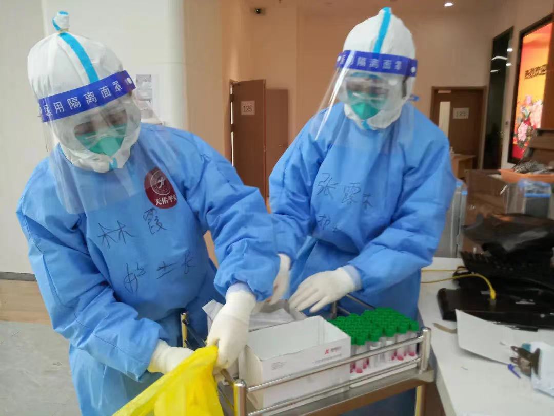 “來到這里(方艙)后發(fā)現(xiàn)生活環(huán)境比較艱苦,但是看到肖建主任、王坤偉醫(yī)生作為老黨員,時(shí)刻沖鋒在前,我非常觸動(dòng)并時(shí)刻提醒自己要像黨員一樣去戰(zhàn)斗。”林霞說,開始她也有些緊張,快速調(diào)節(jié)好心態(tài)后,現(xiàn)在已能全身心投入工作中。作為副隊(duì)長,為了緩解護(hù)理隊(duì)員的壓力,林霞護(hù)士長堅(jiān)持每天陪大家一起進(jìn)艙。由于艙內(nèi)不能帶手機(jī),林霞護(hù)士長每天手握呼機(jī),及時(shí)與隊(duì)員溝通,解決各類突發(fā)事情,為姐妹們加油鼓勁。夜間休息時(shí)呼機(jī)也開著放在枕邊,保證大家能隨時(shí)找到她。