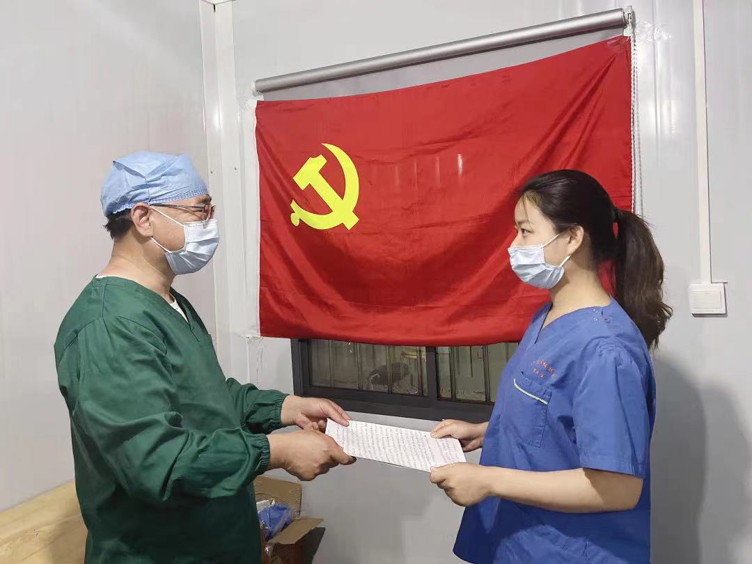 “上海疫情防控正處在攻堅(jiān)階段,我親眼看到了身邊黨員同事沖鋒在前,他們凡事‘我先上’的精神深深地打動(dòng)了我。作為天佑醫(yī)療隊(duì)的一員,我想用實(shí)際行動(dòng)向黨組織靠攏,請(qǐng)黨組織在這場(chǎng)疫情阻擊戰(zhàn)中考驗(yàn)我……”遞交入黨申請(qǐng)書時(shí),蘇圓圓醫(yī)生堅(jiān)定地說。