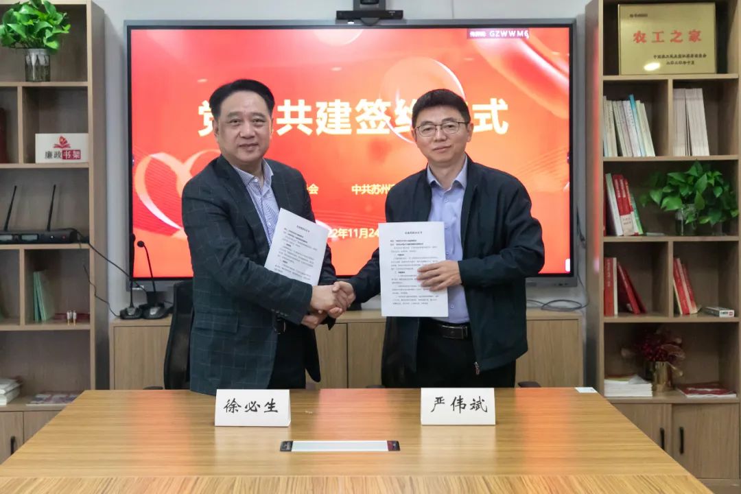 中共蘇州藍(lán)十字腦科醫(yī)院支部委員會(huì)書記、院長(zhǎng)徐必生和中共蘇州市中心血站委員會(huì)書記、站長(zhǎng)嚴(yán)偉斌分別就各自組織成立時(shí)間、人員情況、亮點(diǎn)工作進(jìn)行了簡(jiǎn)要介紹,并確定了本次共建內(nèi)容以及共建目標(biāo)。隨后,雙方黨組織書記在全體參會(huì)人員的共同見證下簽訂了《黨建聯(lián)建協(xié)議書》。