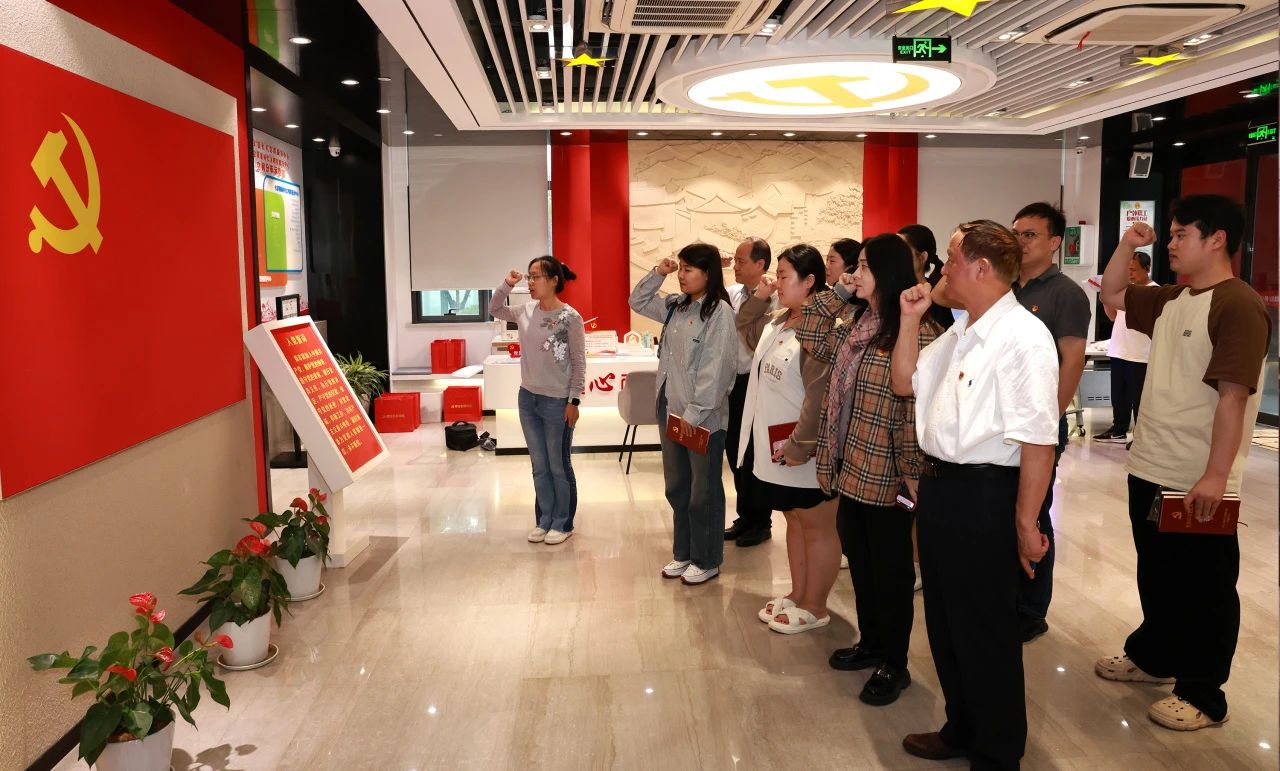 “我志愿加入中國共產(chǎn)黨……隨時準備為黨和人民犧牲一切,永不叛黨。”在七寶黨群服務中心館內(nèi),黨員們在醫(yī)院黨支部副書記趙宇蘭的領(lǐng)誓下,重溫入黨誓詞,用鏗鏘有力的誓言表達出內(nèi)心堅定的理想信念。