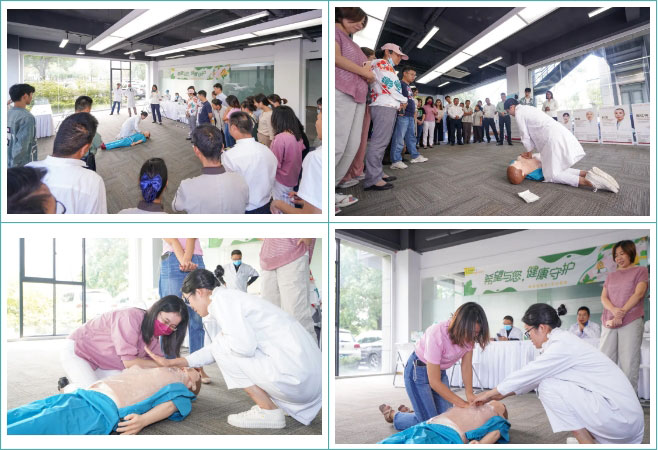 9月25日上午,同濟大學(xué)附屬天佑醫(yī)院(籌)副院長、神經(jīng)內(nèi)科學(xué)科帶頭人黃樹其主任,醫(yī)院黨支部書記、腫瘤科肖建主任,康復(fù)醫(yī)學(xué)科王丙輝副主任,骨科熊南平副主任醫(yī)師,口腔科車苗苗醫(yī)生和婦科孫緩醫(yī)生,護士李林樺、王咪、李柯欣、張鑫鑫和桂麗燕等志愿服務(wù)者共16人組成的健康宣教團隊,應(yīng)新希望服務(wù)(新希望物業(yè)服務(wù)集團有限公司)邀請,趕往位于上海浦東張江高科的上海半島科技園,為業(yè)主們做了專場健康咨詢和急救培訓(xùn),這是新希望服務(wù)與天佑醫(yī)院進行的首場公益服務(wù)活動。