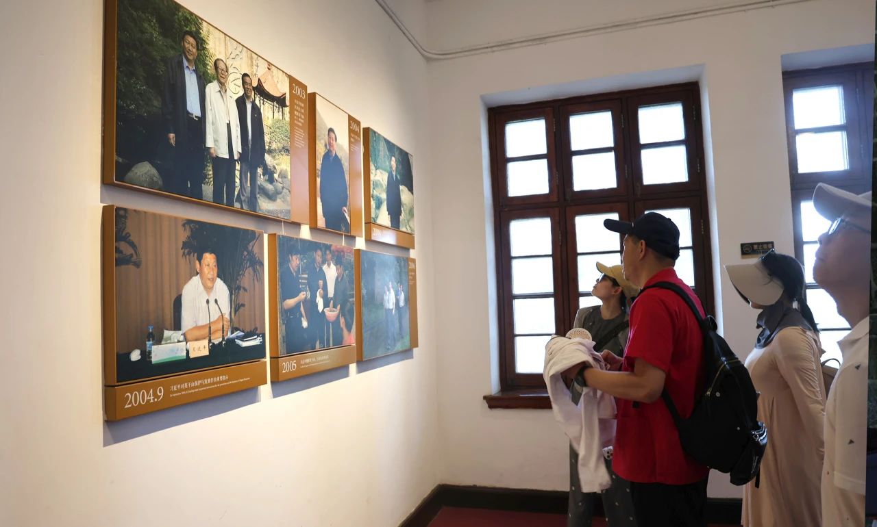 或懷著崇敬之心探訪毛主席下榻處“皇后飯店”。斑駁的磚墻訴說著歲月滄桑,簡樸的室內(nèi)陳設(shè)展示著偉人風(fēng)范。大家從歷史的遺跡故事中了解新中國建設(shè)與莫干山變遷的關(guān)聯(lián),亦深刻了解了黨的偉大。此外,大家還游覽了松月廬——蔣介石故居。