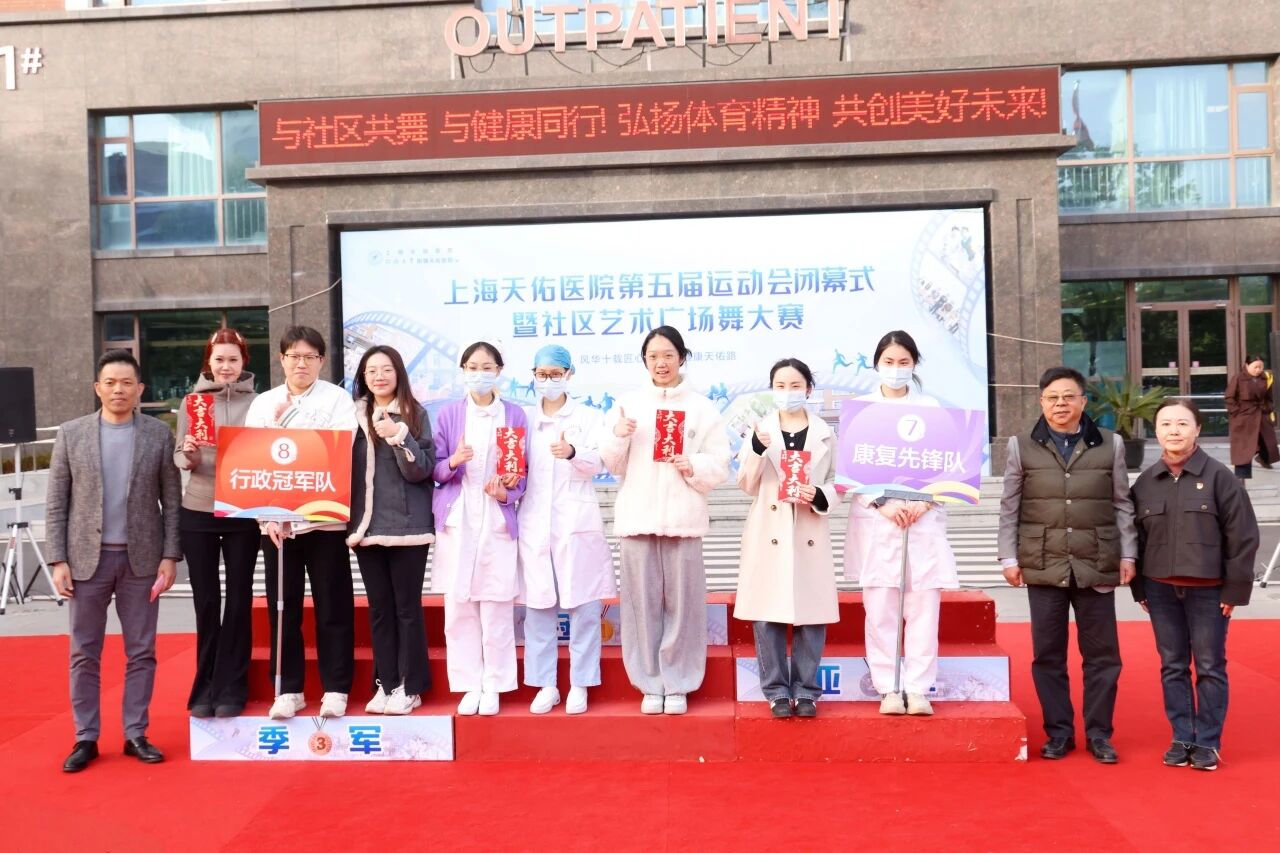11 月 27 日下午,上海天佑醫(yī)院南廣場(chǎng)彩旗飄揚(yáng)、歡聲雷動(dòng),為期兩周的“上海天佑醫(yī)院第五屆運(yùn)動(dòng)會(huì)”勝利閉幕。在閉幕式上,舉行了拔河復(fù)賽和決賽,11支來(lái)自社區(qū)的舞蹈隊(duì)激情獻(xiàn)舞。桃浦鎮(zhèn)總工會(huì)主席張文應(yīng)邀參加閉幕式,與天佑醫(yī)院蔡劍飛院長(zhǎng)、卓立峰總經(jīng)理等院領(lǐng)導(dǎo)一起,共同為參賽代表隊(duì)和運(yùn)動(dòng)員頒獎(jiǎng)。