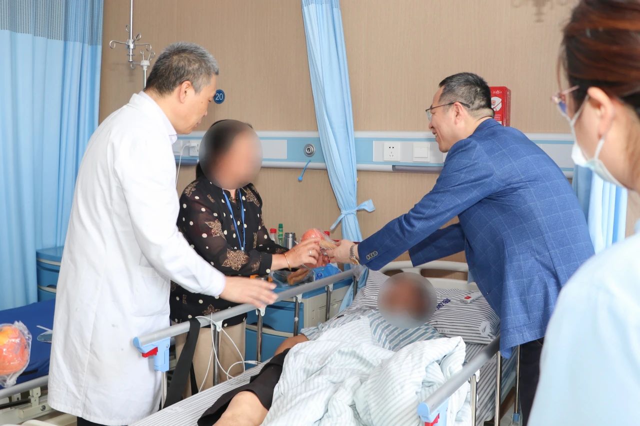 4月29日,院領(lǐng)導(dǎo)帶領(lǐng)醫(yī)護(hù)團(tuán)隊(duì)與志愿者組成慰問小組,帶著精心準(zhǔn)備的“溫暖禮包”走進(jìn)各個(gè)病區(qū)。每到一處,為患者送上慰問信與中醫(yī)養(yǎng)生錘——前者滿載真摯祝福,后者可通過穴位按摩緩解不適、促進(jìn)血液循環(huán)。“今天感覺怎么樣?治療上有什么需求盡管跟我們說。”在病床前,醫(yī)護(hù)人員握著患者的手親切交談,詳細(xì)了解病情進(jìn)展與住院感受,用通俗易懂的語(yǔ)言講解康復(fù)注意事項(xiàng),鼓勵(lì)患者保持樂觀心態(tài)。溫暖的話語(yǔ)、真誠(chéng)的關(guān)懷,讓白色病房洋溢著家的溫馨。“住院這些天,護(hù)士每天按時(shí)提醒吃藥,醫(yī)生查房時(shí)比家人還細(xì)心,現(xiàn)在連院領(lǐng)導(dǎo)都來(lái)看我們,真的特別感動(dòng)!”患者王先生的一番話,道出了住院患者的共同心聲。
