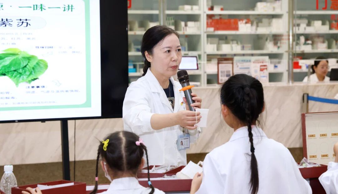 下午2時許,孩子們穿上定制白大褂,在門診大廳興奮合影后,迫不及待地開始了體驗。在中藥房,田韶波藥師早已備好紫蘇葉、陳皮、薄荷、藿香等多種常見藥材,迎接“小中醫(yī)”的到來。