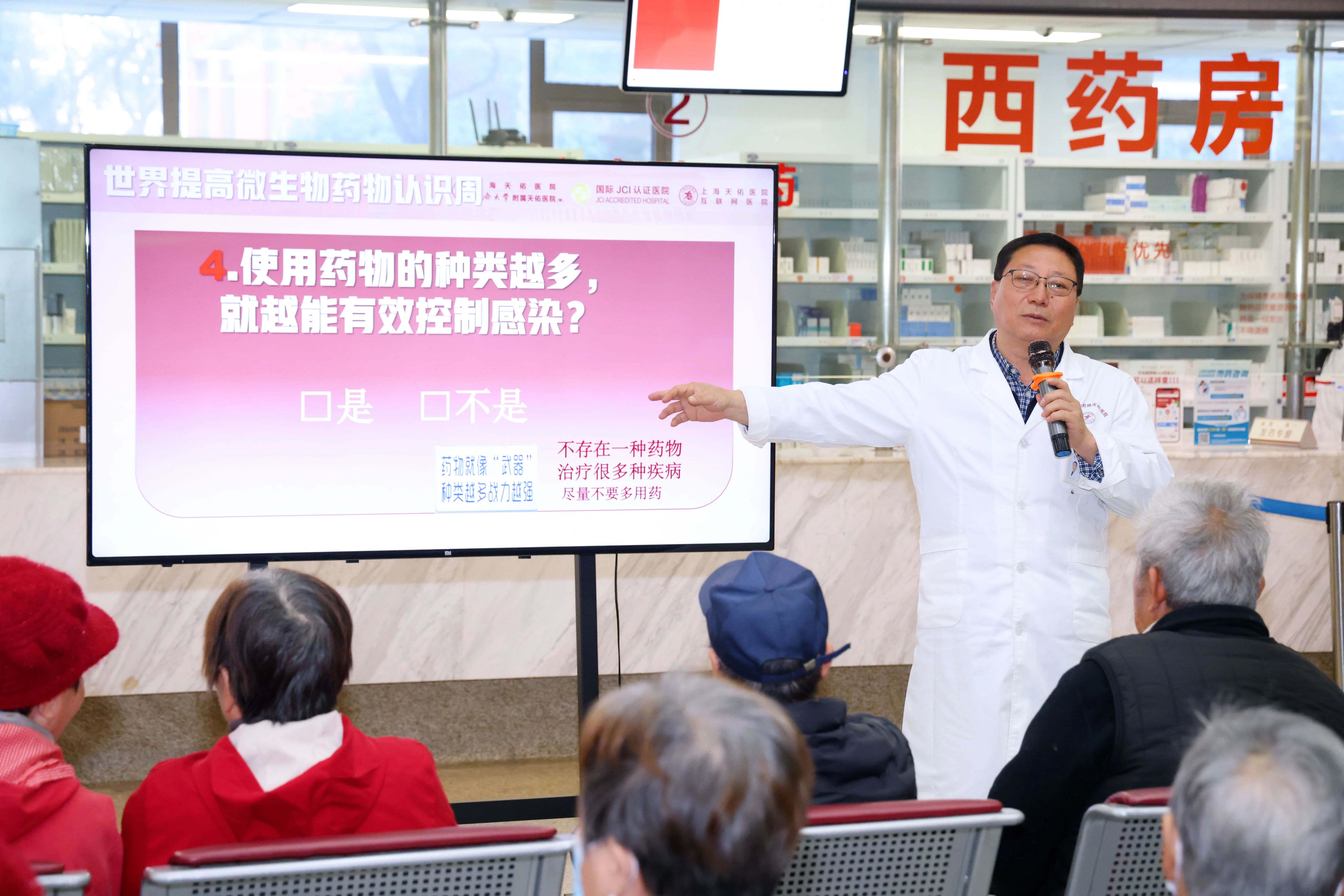 張玲主任介紹了“世界提高抗微生物藥物認(rèn)識(shí)周”的由來(lái)。她提到,隨著抗微生物藥物濫用問(wèn)題日益突出,細(xì)菌耐藥性不斷增強(qiáng),人類(lèi)面臨“無(wú)藥可用”的潛在危機(jī)。上海天佑醫(yī)院舉辦此次活動(dòng),就是希望通過(guò)科普,讓居民了解抗微生物藥物,學(xué)會(huì)合理用藥,共同遏制耐藥性蔓延,守護(hù)好健康。