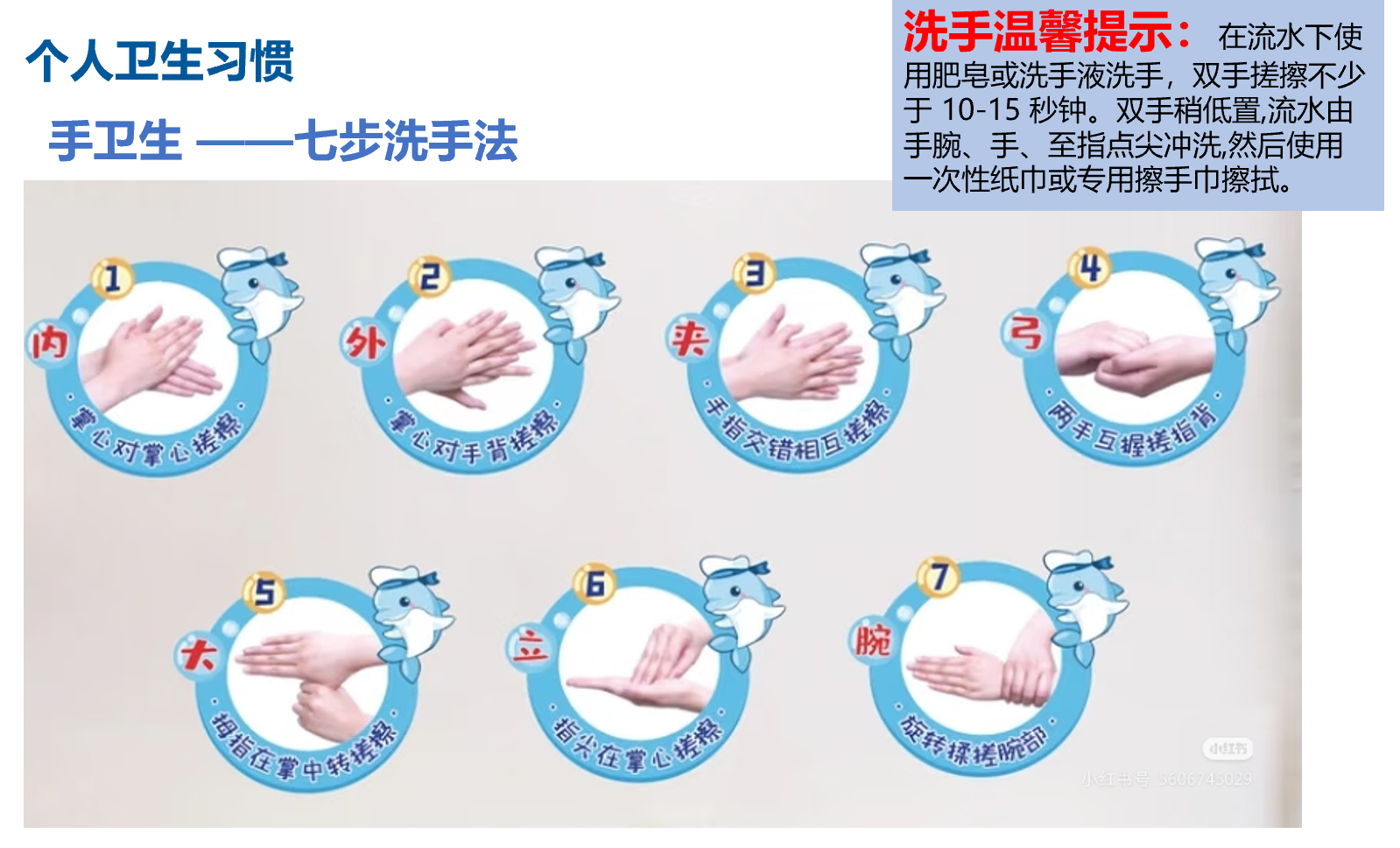 “做好手衛(wèi)生,是預(yù)防感染第一道防線。”任海燕指出,手是傳播病原體主要途徑之一,正確洗手可降低80%接觸性感染風(fēng)險(xiǎn),并現(xiàn)場(chǎng)演示“七步洗手法”,她溫馨提示,“在流水下使用肥皂或洗手液洗手,雙手搓擦不少于15秒鐘。雙手稍低置,流水由手腕、手、至指點(diǎn)尖沖洗,然后使用一次性紙巾或?qū)S貌潦纸聿潦谩?rdquo;