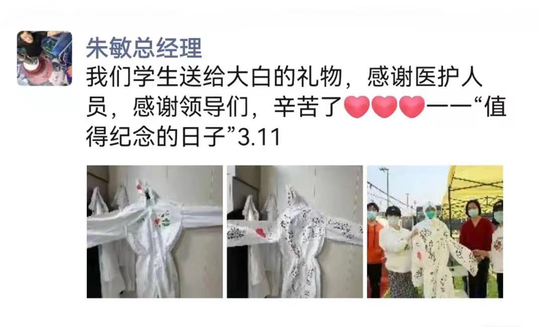 上海藍十字腦科醫(yī)院總經(jīng)理兼黨支部書記朱敏,在看到這件“禮物”時也深受觸動,第一時間配文發(fā)送到朋友圈。一個“值得紀念的日子”,鼓舞著所有在抗疫一線奮戰(zhàn)的人們。