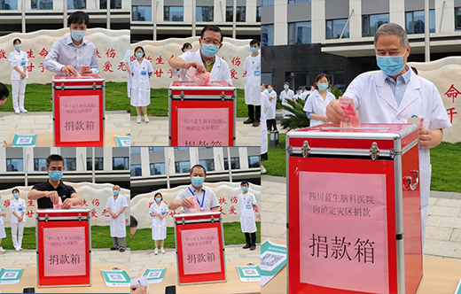 瀘定地震發(fā)生后,四川藍(lán)生腦科醫(yī)院廣大醫(yī)護(hù)工作者對不幸遇難同胞深感悲痛,對災(zāi)區(qū)群眾十分牽掛,醫(yī)院黨支部主動(dòng)作為、積極組織,向全體醫(yī)護(hù)工作者發(fā)出倡議,充分發(fā)揚(yáng)“一方有難、八方支援”的精神,大力弘揚(yáng)醫(yī)者仁心、醫(yī)者大愛的高尚情操,倡議廣大黨員、員工積極向?yàn)?zāi)區(qū)人民捐款,力所能及為災(zāi)區(qū)和受災(zāi)群眾貢獻(xiàn)一份自己的力量。
