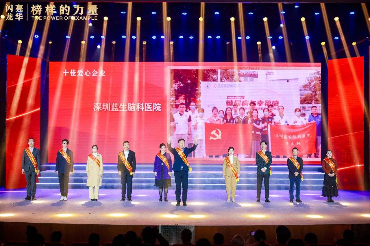活動(dòng)表彰第十屆“閃亮龍華人”、第六屆“好家訓(xùn)好家風(fēng)好家庭”、2024年度“龍華好網(wǎng)民”“十佳愛心項(xiàng)目”“十佳愛心企業(yè)”等先進(jìn)個(gè)人、先進(jìn)集體和先進(jìn)項(xiàng)目,同時(shí)發(fā)布龍華區(qū)“十大感動(dòng)瞬間”。深圳藍(lán)生腦科醫(yī)院憑借其長期以來在促進(jìn)社區(qū)健康、公益義診、關(guān)愛員工等方面的出色表現(xiàn),榮獲“十佳愛心企業(yè)”稱號(hào)。